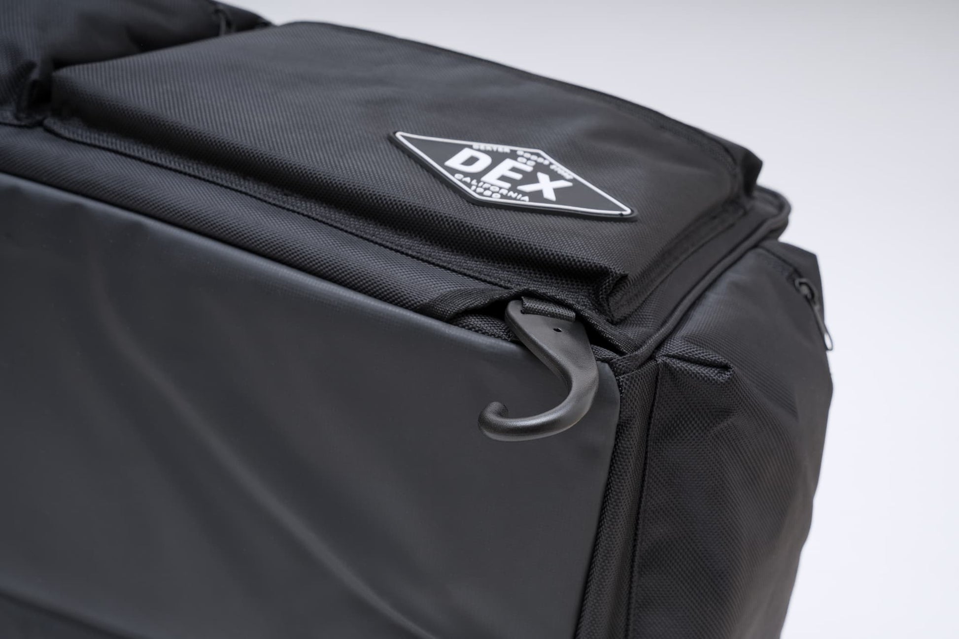●バッグ上部にはフェンスフック(4点固定)を装備し、開いたまま使用可能。
